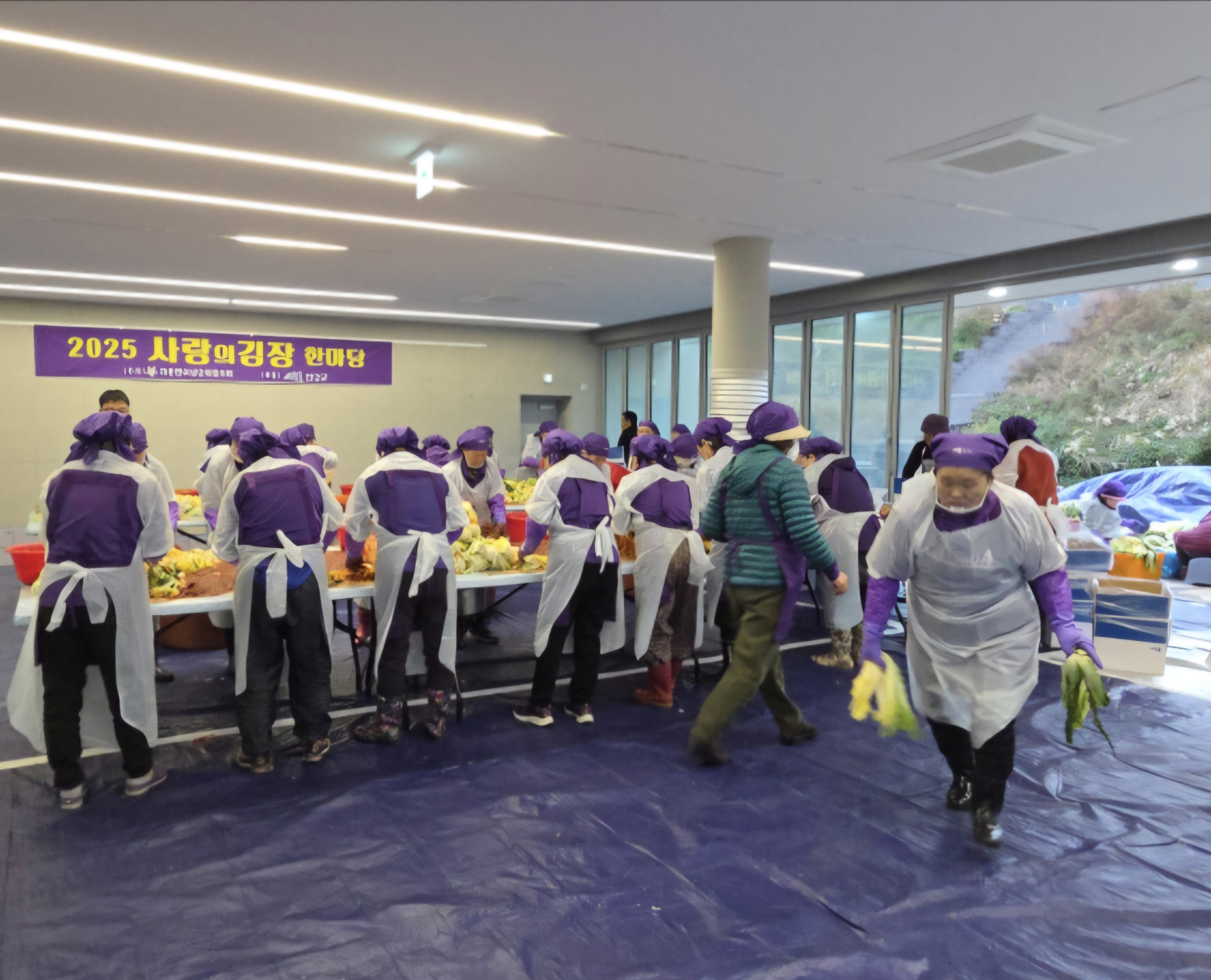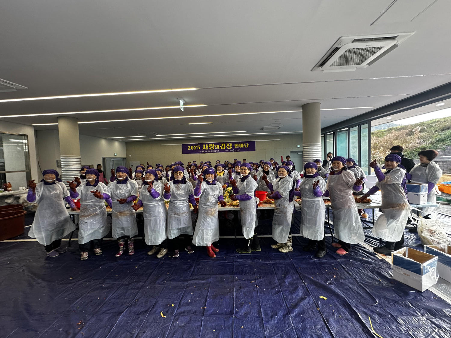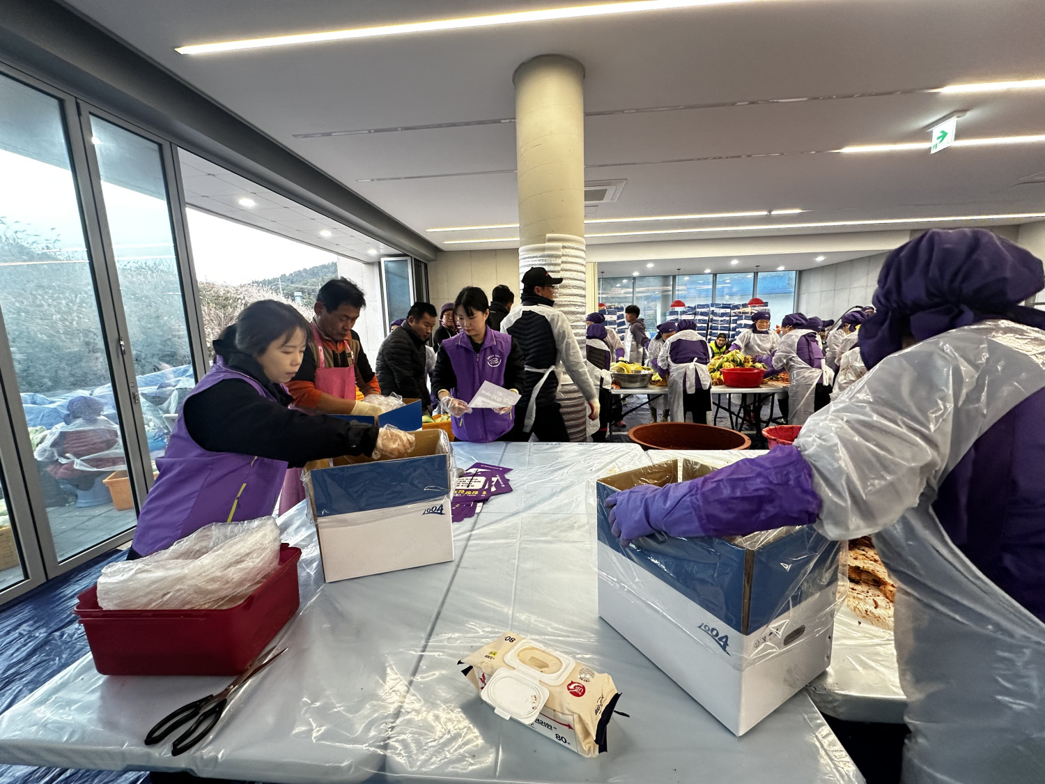 자은면여성단체협의회와 복지기동대가 마음을 모아 김장을 담그고,