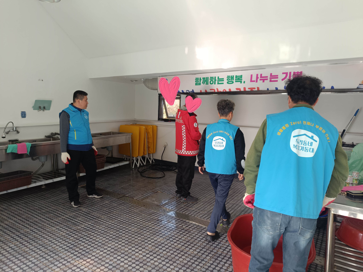 활동내용:복지기동대가 겨울맞이 나눔 김장 담그기 행사를 앞두고 어려운 이웃들에게 따뜻한 마음을 전하기 위해 청산면부녀회 회원들과 함께 김장 재료 손질과 집기 청소에 일손을 보태 정성껏 준비에 힘을 보태며 이웃사랑 실천에 동참 참.