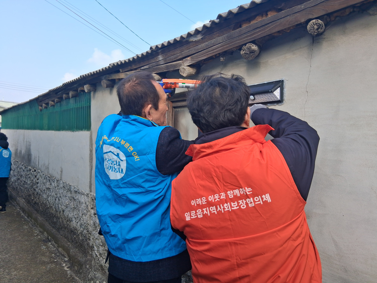 일로읍 복지기동대는 가로등이 없어 어둡고 협소한 골목길에 태양광 벽부등을 설치해 밤에도 안심하고 이동할 수 있는 안전한 골목길 을 조성했다.