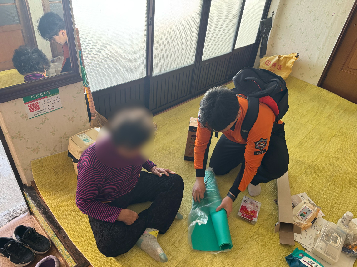 -안전꾸러미(미끄럼방지매트, 산소마스크) 전달
