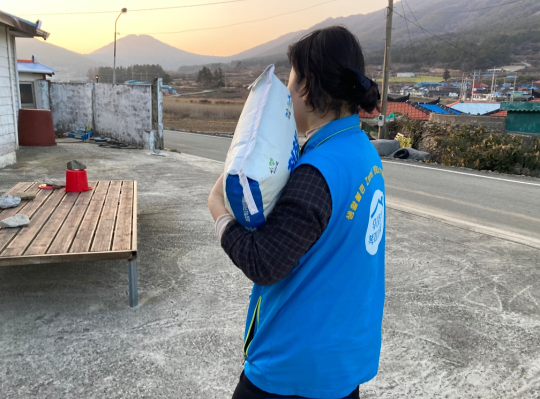 활동내용: 복지기동대원과 맞춤형복지팀 직원이 협력하여 관내 식생활에 어려움을 겪고 있는 취약계층 가구를 방문, 생활 필수 물품인 쌀을 직접 전달하며 안부를 확인하는 생활밀착형 복지 서비스를 실시함.