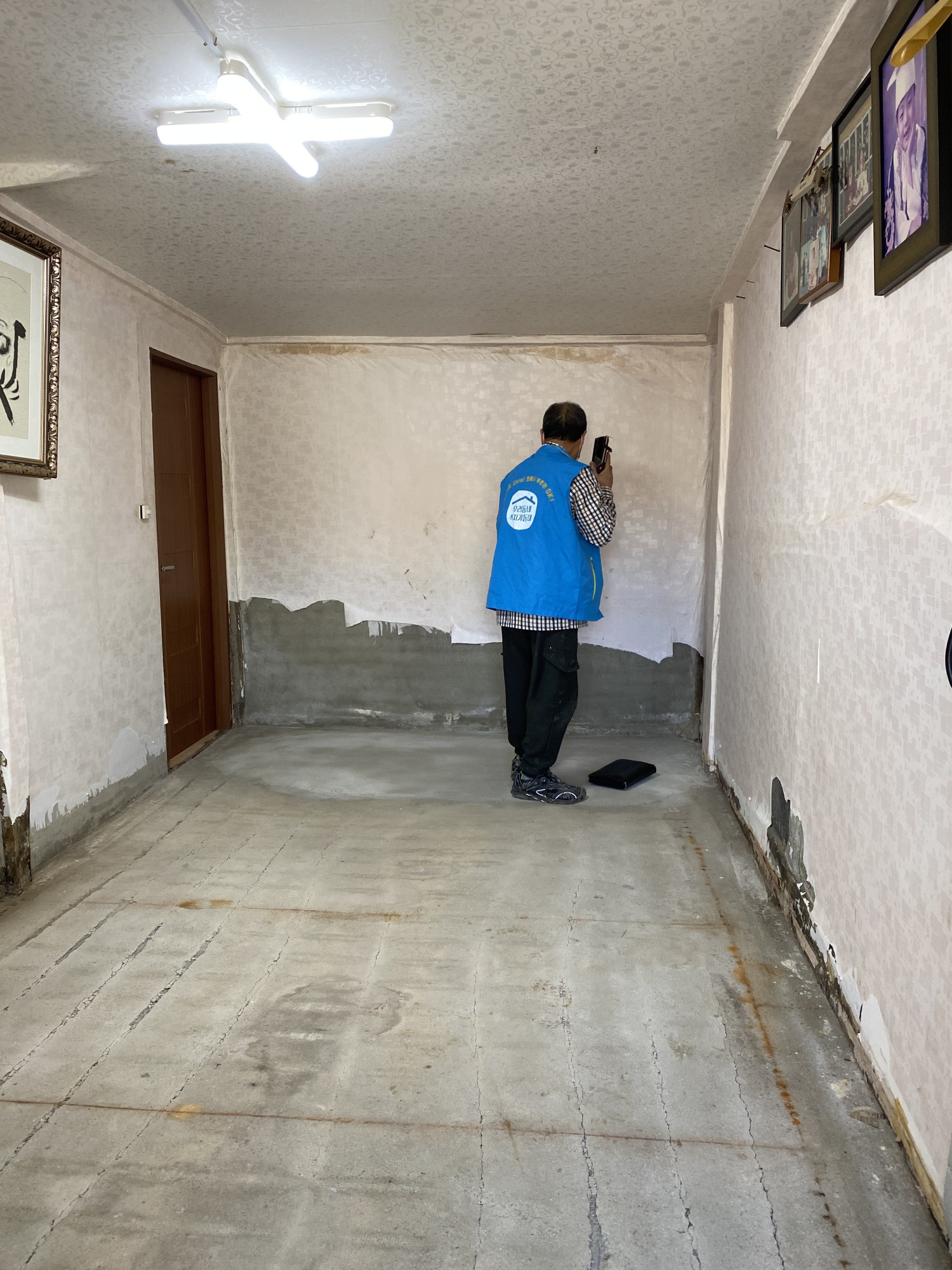 명예사회복지공무원을 통해 발굴된 독거노인 가구로, 주택 내 수도 누수로 인해 도배와 장판이 심하게 훼손되는 위기상황이 발생함.