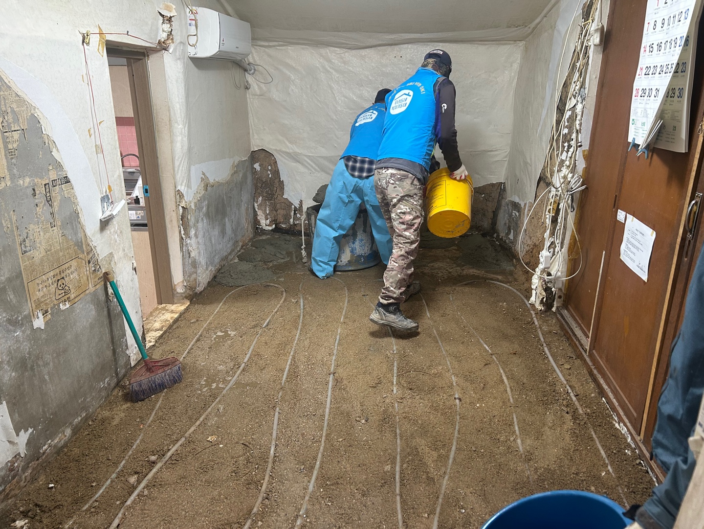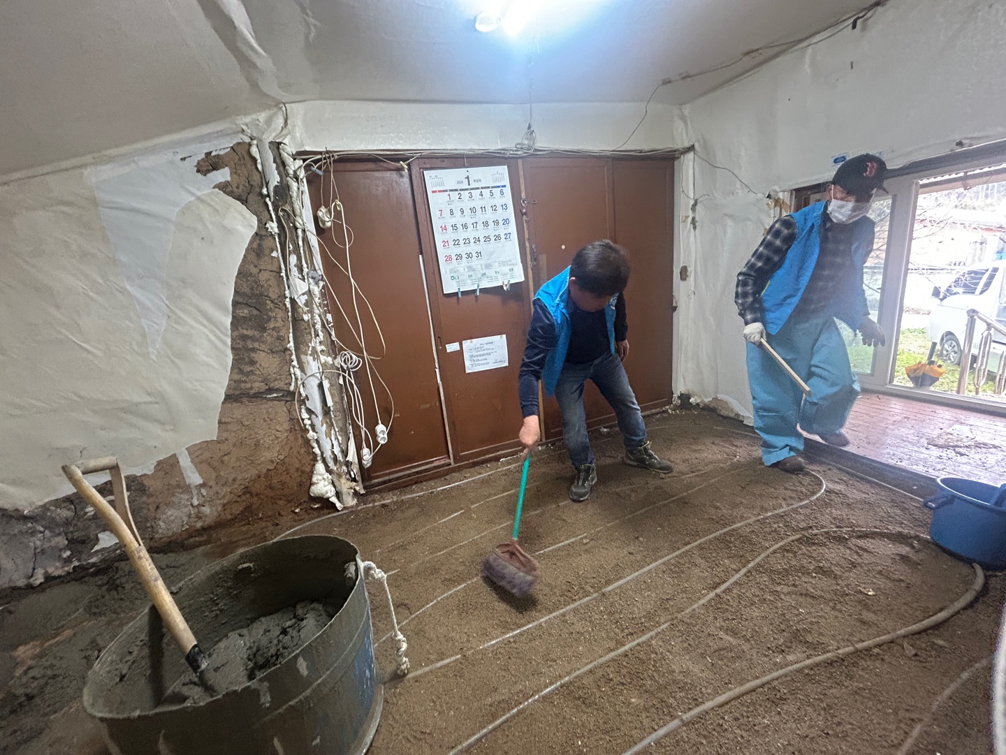 이에 나산면 복지기동대는 주거환경개선을 위해 2일차 바닥 미장 작업을 진행하였습니다.
