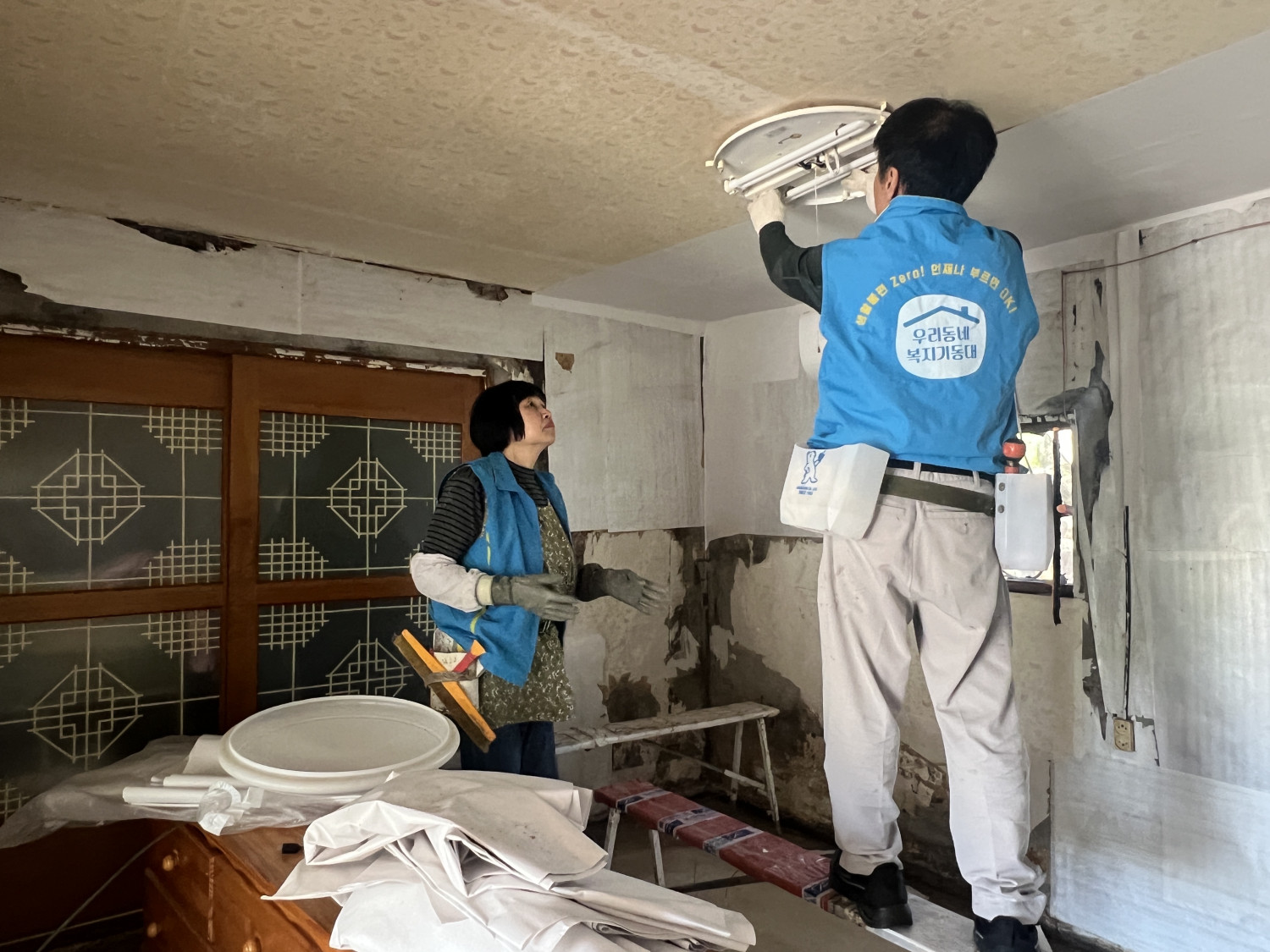 집 내부 곰팡이가 너무 많아 건강이 위험한 상태였는데 복지기동대가