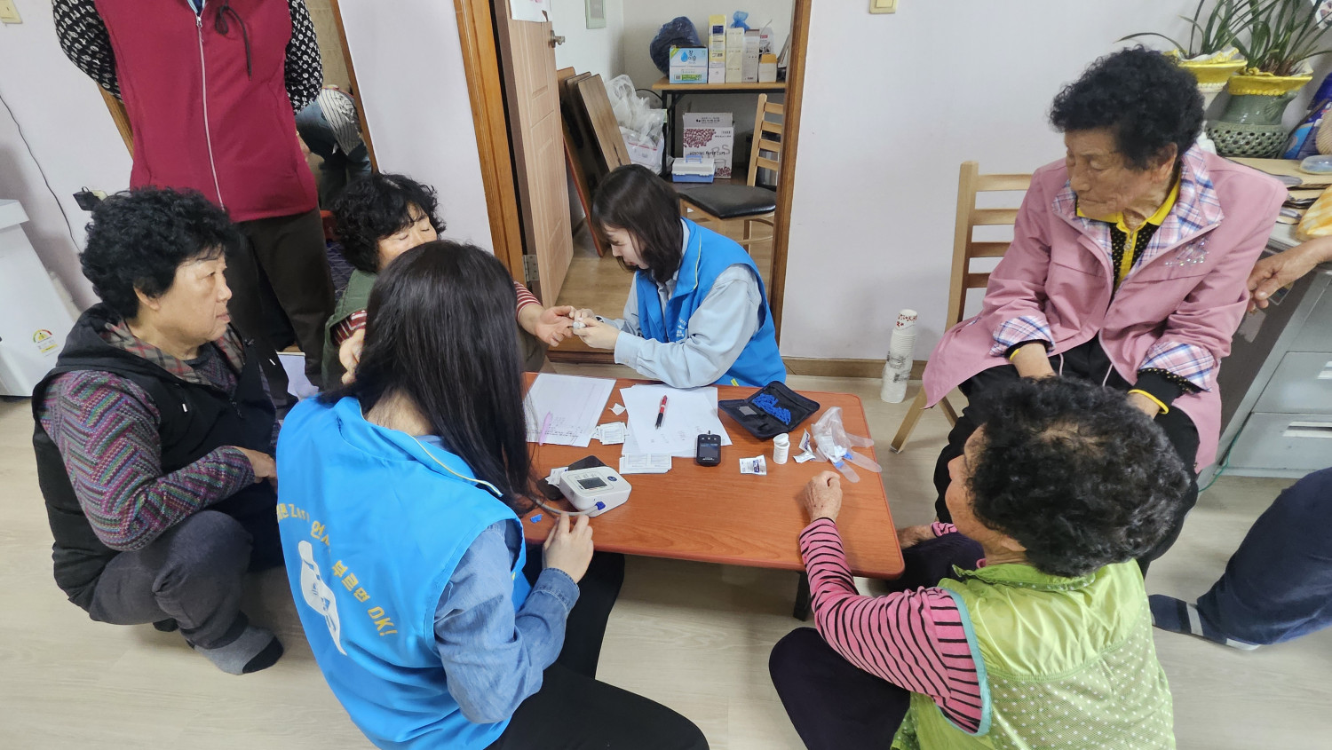 오전 9시 30분, 방문복지팀과 복지기동대원들이 밝은 미소로 주민들을 맞이했습니다. 가장 먼저 진행된 것은 기본 건강 체크였습니다. 어르신들은 혈압을 재고 혈당을 확인하며 본인의 건강 상태를 꼼꼼히 살폈습니다.