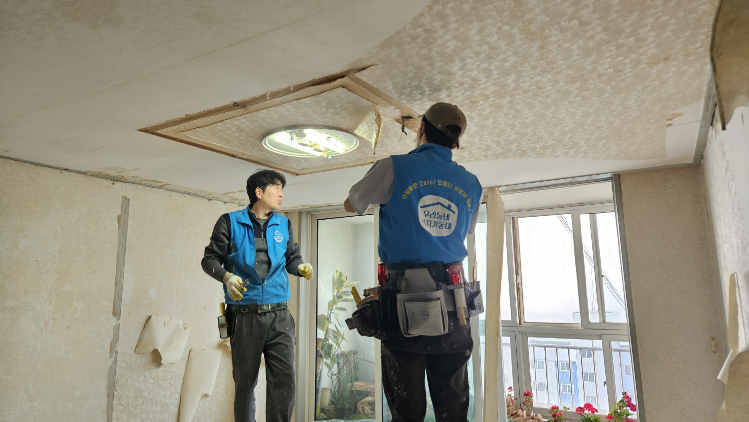 우리동네 복지기동대는 주택 노후로 훼손된 천장 보수 공사를 진행했습니다.