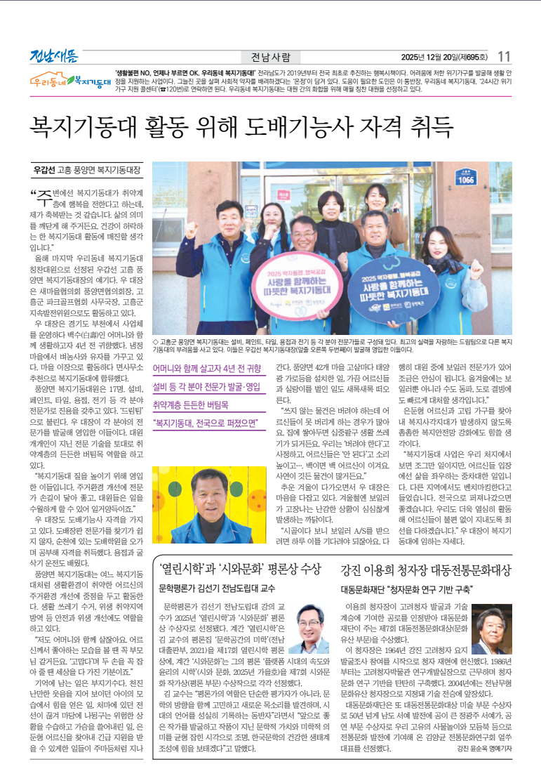 ✅ 우리동네 복지기동대장님, 전남새뜸에 실리다!