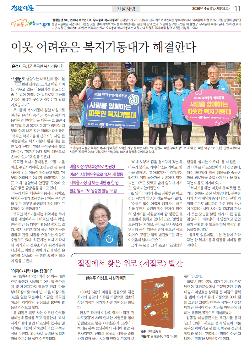 ✅ 우리동네 복지기동대원님, 전남새뜸에 실리다!